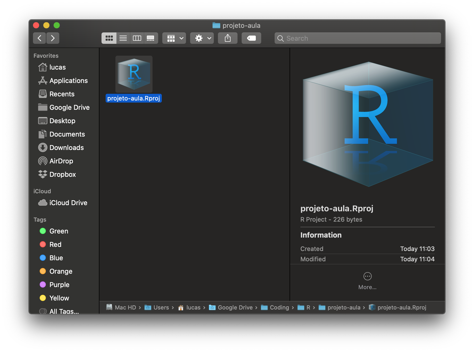 Usando o arquivo .rproj fica mais fácil organizar seus arquivos e análises.